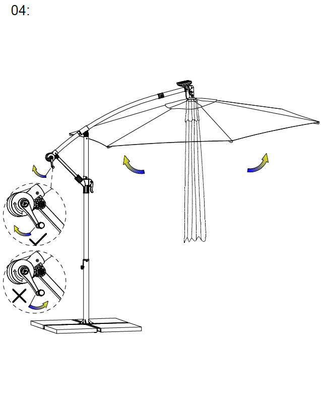 Drej håndtaget med uret for at åbne parasolens baldakin helt.