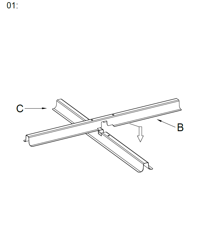 Indsæt stativet (Del D) i midten af krydsbase rammen dannet af Del B og Del C.