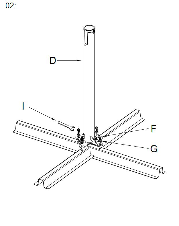 Fastgør Del D ved hjælp af boltene (Del F) og skiverne (Del G).