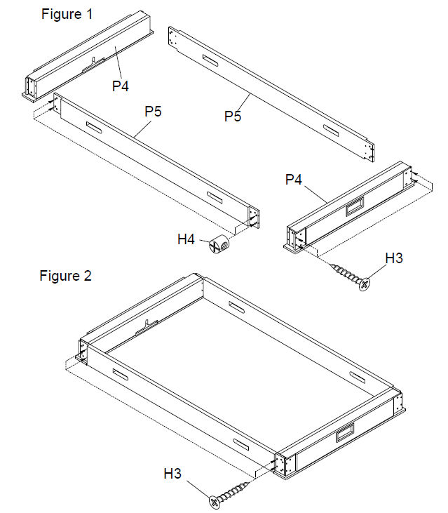 Fastgør låse (P6) til slidserne på bensidepanelerne (P5) ved hjælp af skruer (H8).