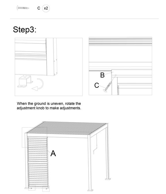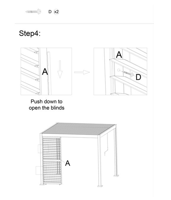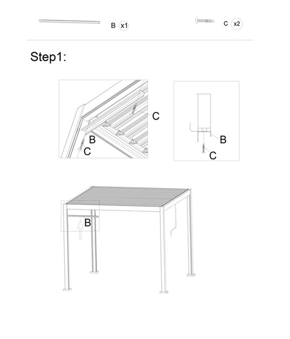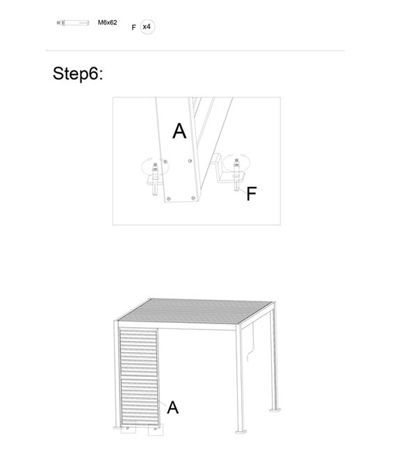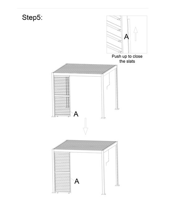 5. Opbevaring: Hvis pergolaen skal opbevares i længere perioder, skal den demonteres og opbevares på et tørt sted.