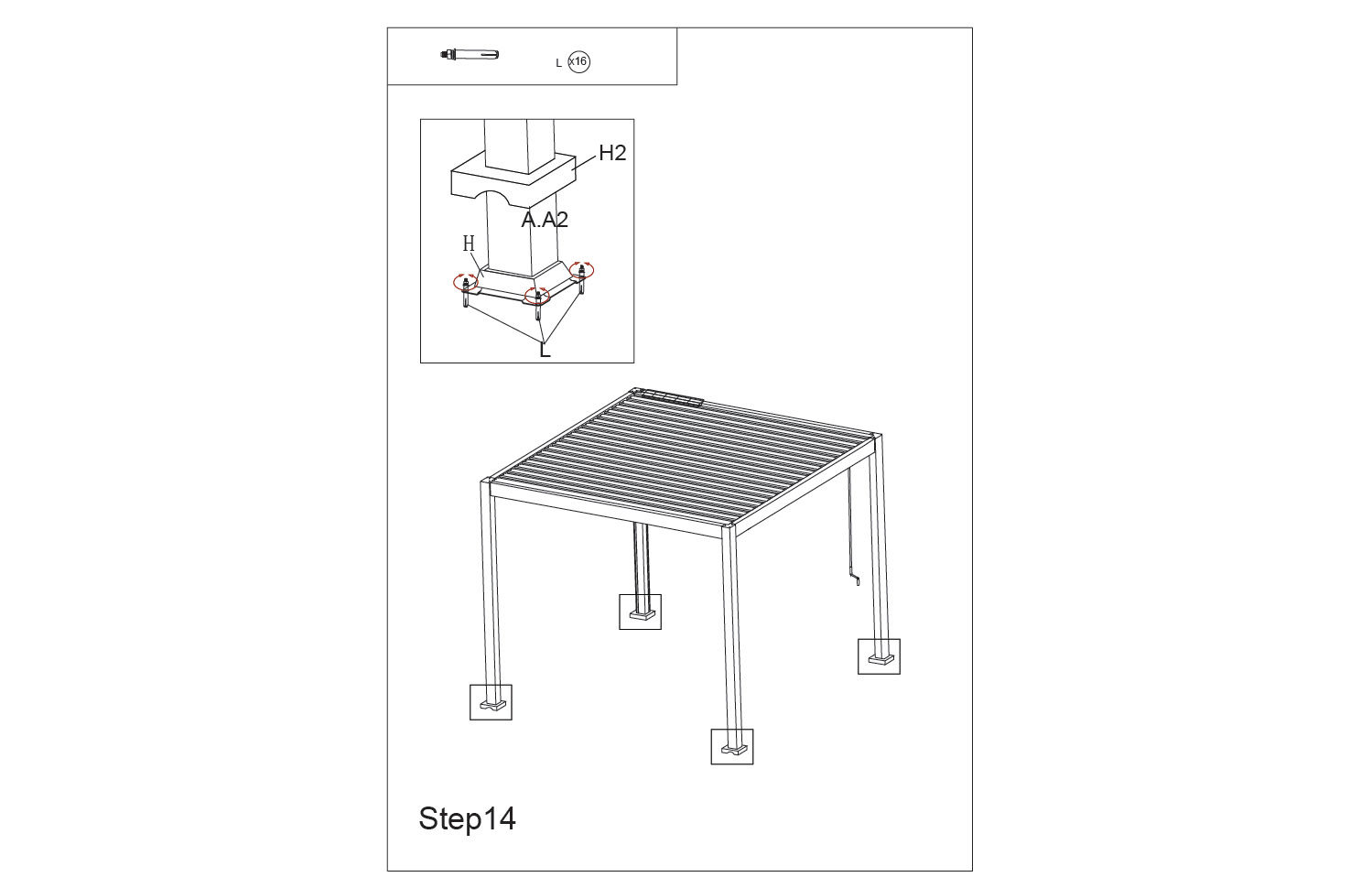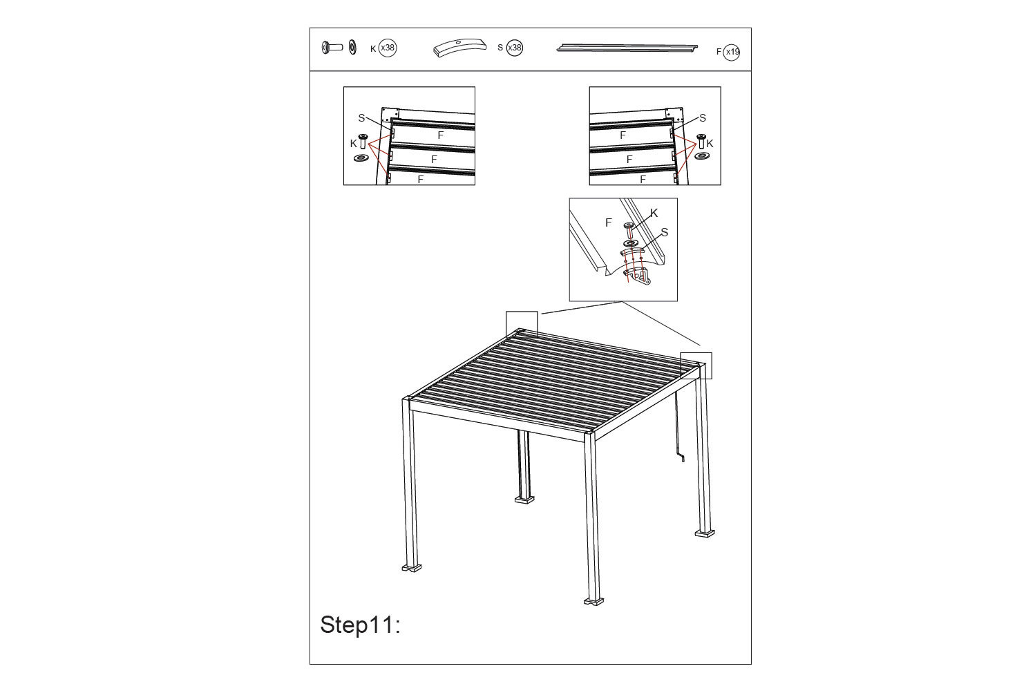 5. Opbevaring: Hvis pergolaen skal opbevares i længere perioder, skal den demonteres og opbevares på et tørt sted.