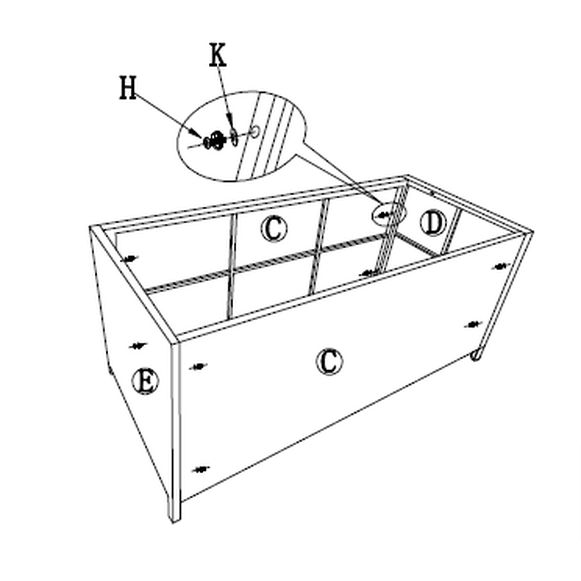 Placer de to endepaneler (D og E) i hver ende for at danne et rektangel.