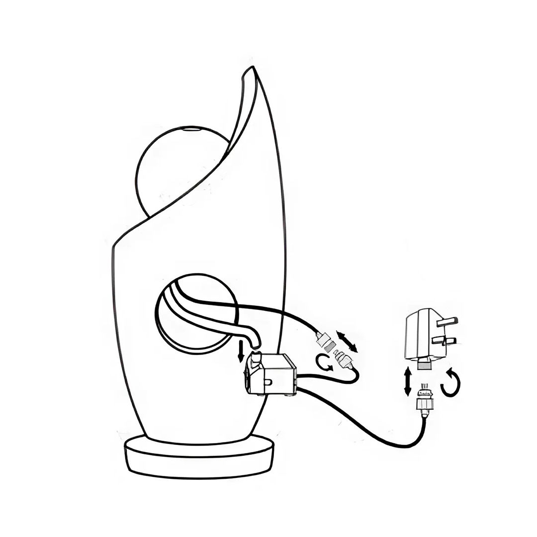 Den konkave kant af springvandet skal passe til den konvekse del af reservoir. Sørg for, at elledningen kan passere gennem ledningsåbningen.