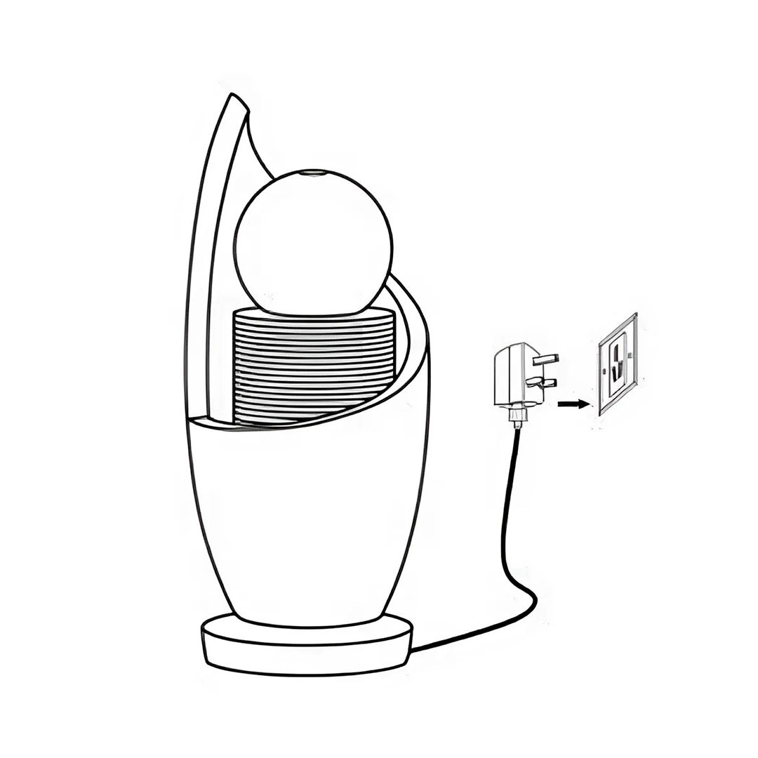 Fremstillet af holdbar polyresin, er denne vandfunktion bygget til at modstå elementerne, mens den bevarer sit raffinerede, stenlignende udseende. Det iøjnefaldende design centrerer sig omkring en glat kugle, der blidt leder vand ned ad den fløjlsagtige piedestal, omgivet af en elegant buet ydre skal, der tilføjer dybde og dimension til stykket. Det enkelte varme hvide LED-lys oplyser subtilt kuglen og kaster en blød, omgivende glød, der forbedrer den afslappende atmosfære, især om aftenen.