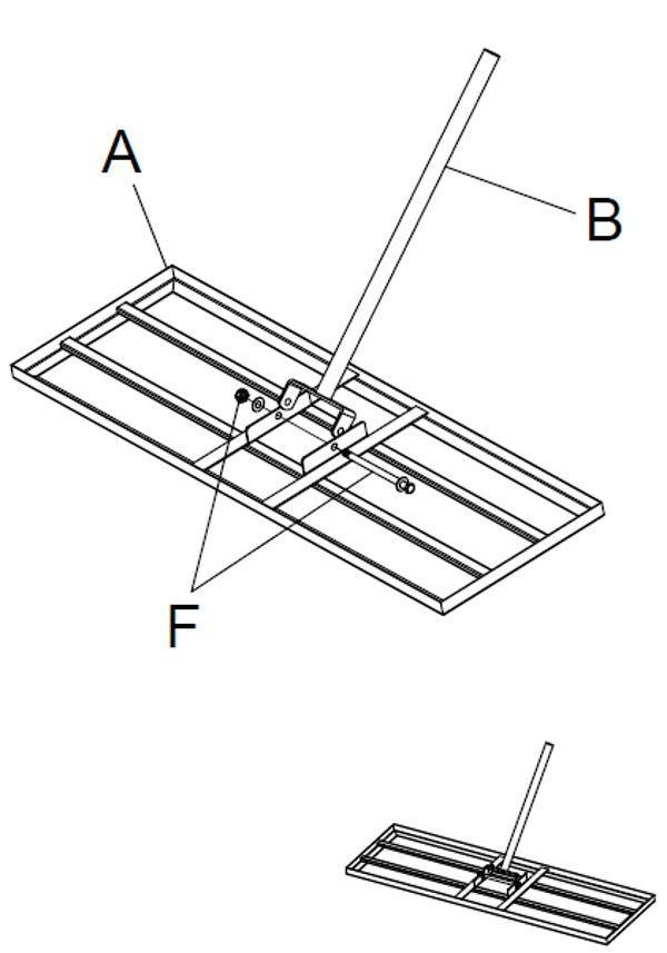 Befestigen Sie das zusammengebaute Griffteil an der Basis des Rasenplanierers.