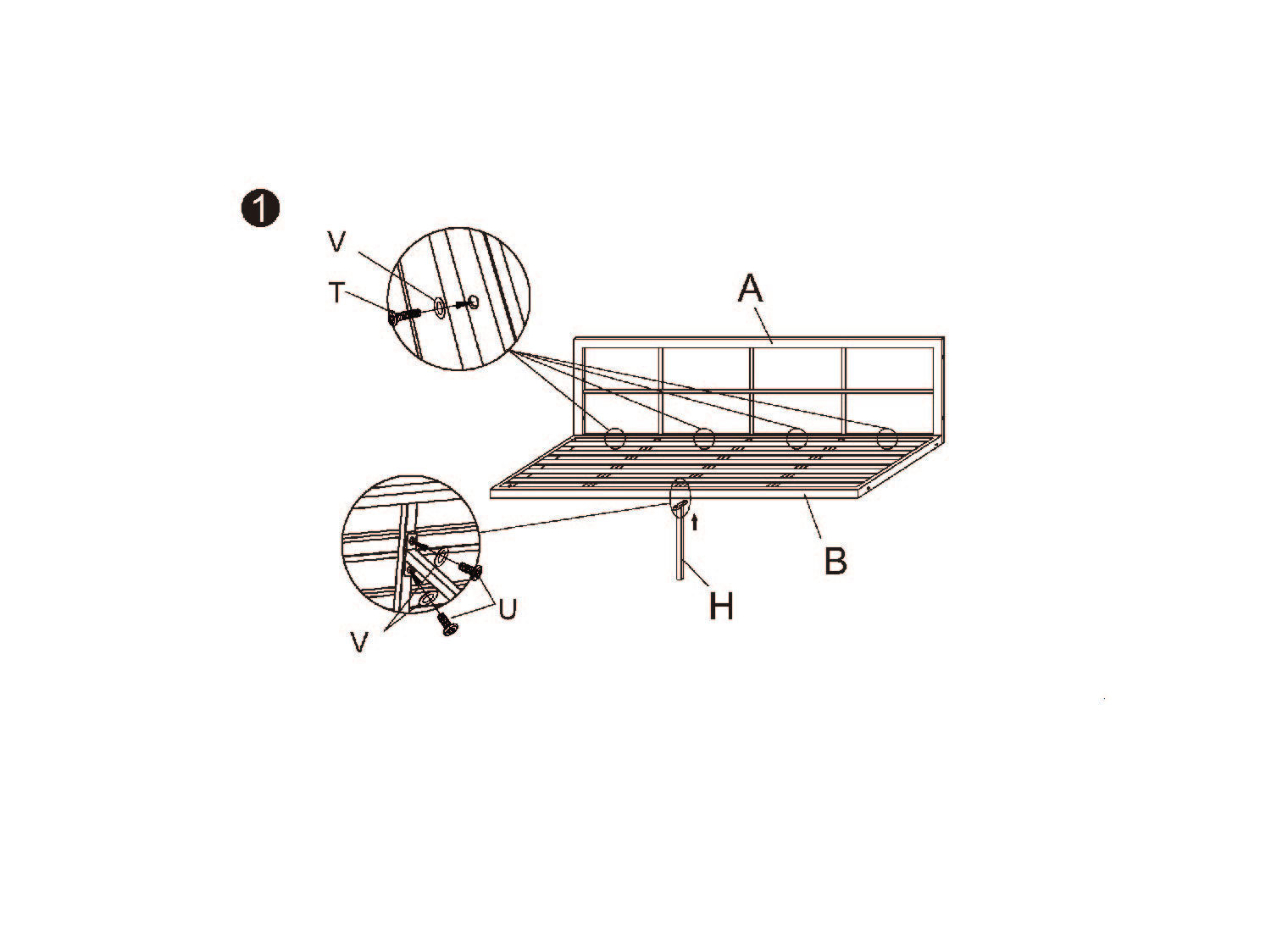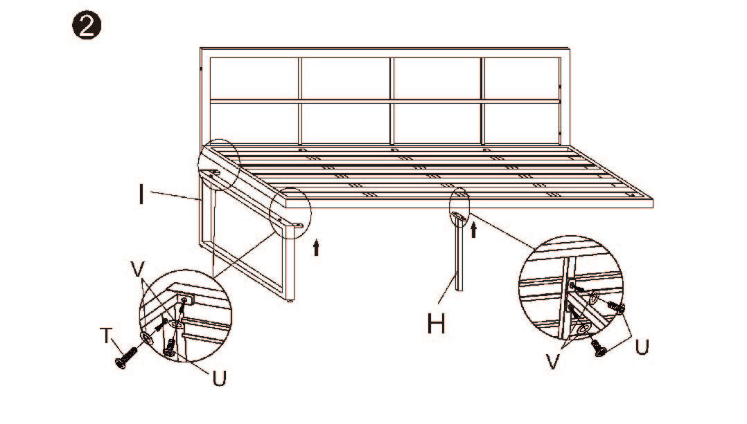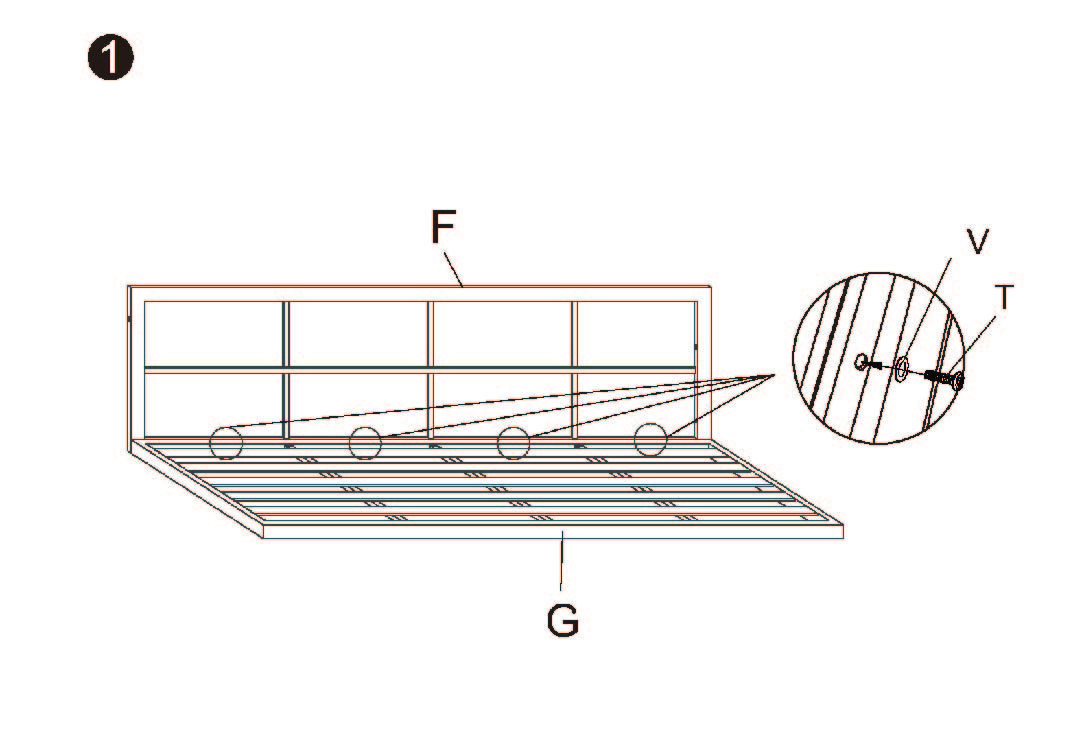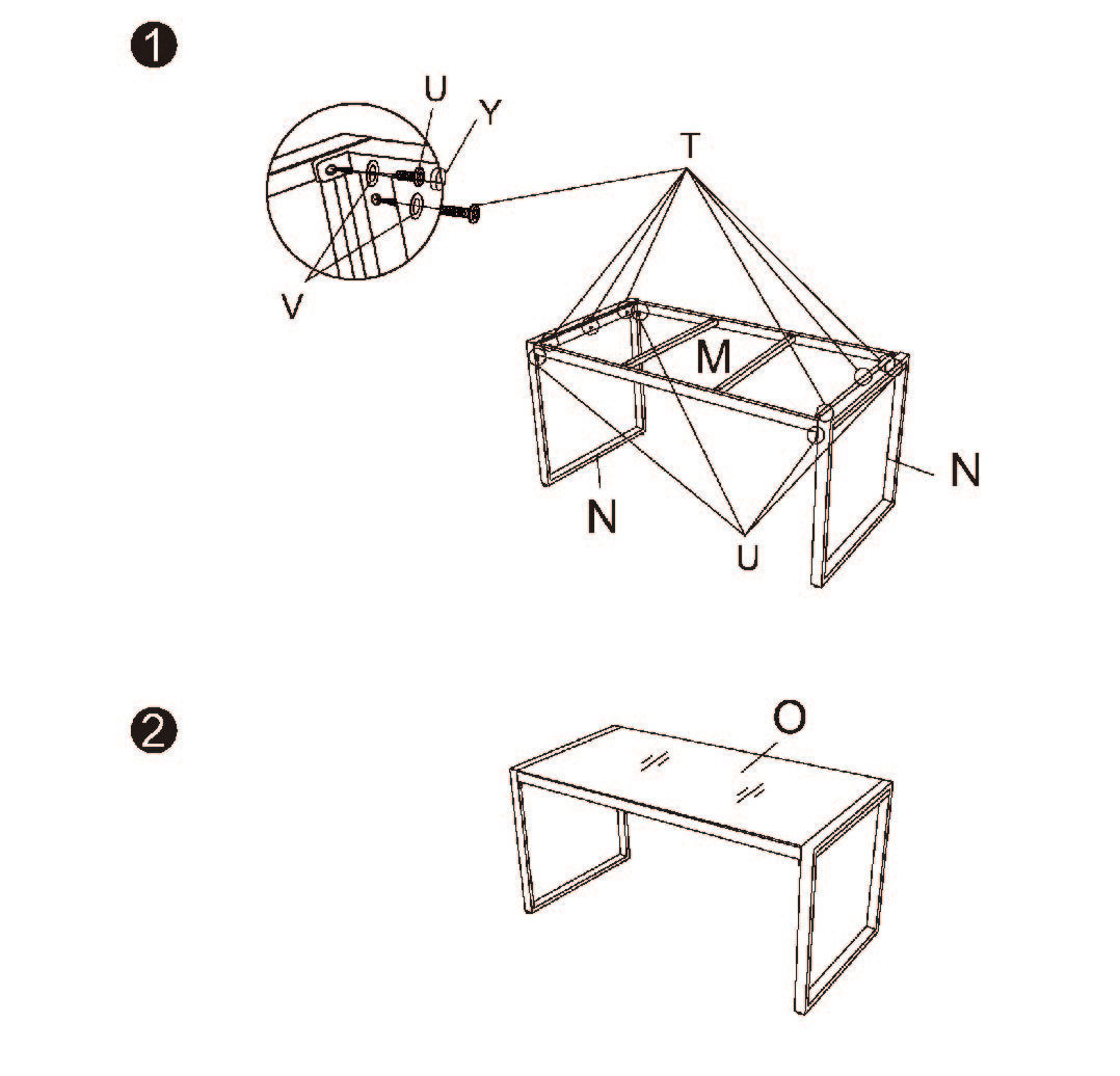 1. Beginnen Sie mit der Montage der N) Tischbeine an der M) Tischplatte. Verwenden Sie die U) M6x20mm Schrauben und die V) Unterlegscheiben.
