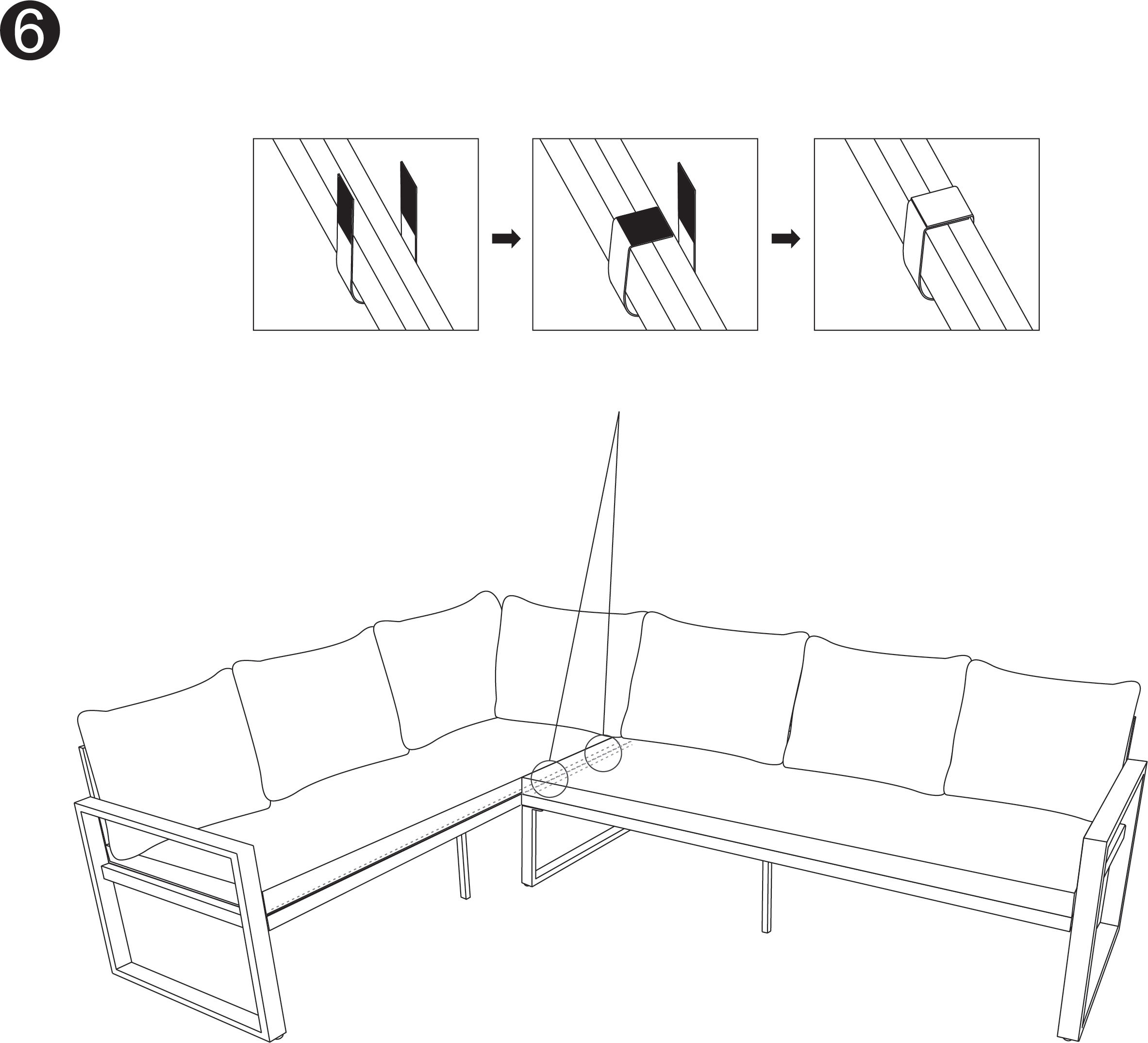 5. Pflege der Kissen: Entfernen Sie die Kissen und reinigen Sie sie gemäß den Pflegehinweisen des Herstellers. Stellen Sie sicher, dass sie vollständig trocken sind, bevor Sie sie wieder anbringen.