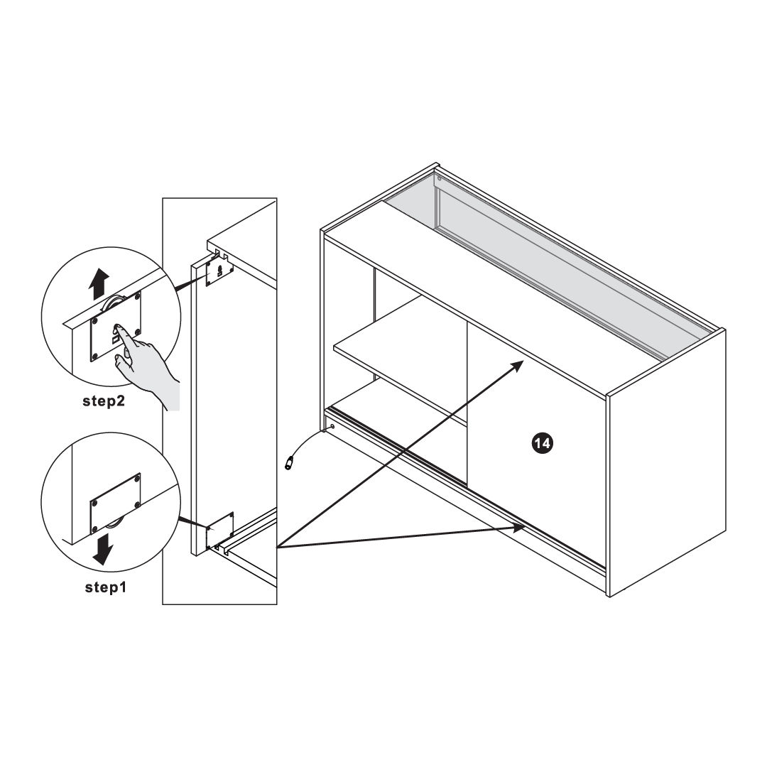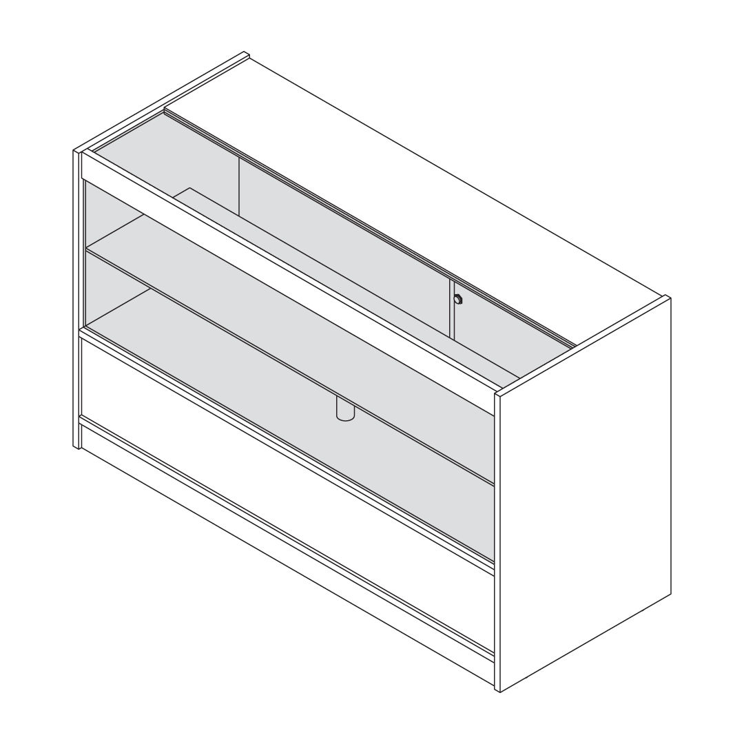 Lager- und Präsentationsbedürfnisse sind in diesem Design durchdacht ausbalanciert. Der Schrank verfügt über drei Regale – zwei Ausstellungsregale zur Hervorhebung von besonderen Artikeln und ein geschlossenes Regal für sicherere Aufbewahrung. Zwei abschließbare Schiebetüren auf der Rückseite, die mit zwei Schlüsseln geliefert werden, bieten sicheren Zugang zu Ihrem Lagerbestand und bewahren gleichzeitig ein schlankes Erscheinungsbild aus der Sicht des Kunden.