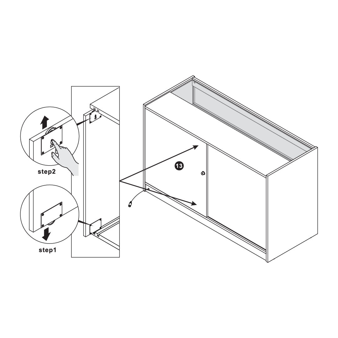 Stellen Sie sicher, dass alle Connector Screws und Cam Locks fest angezogen sind, um die Stabilität des Unit zu gewährleisten.