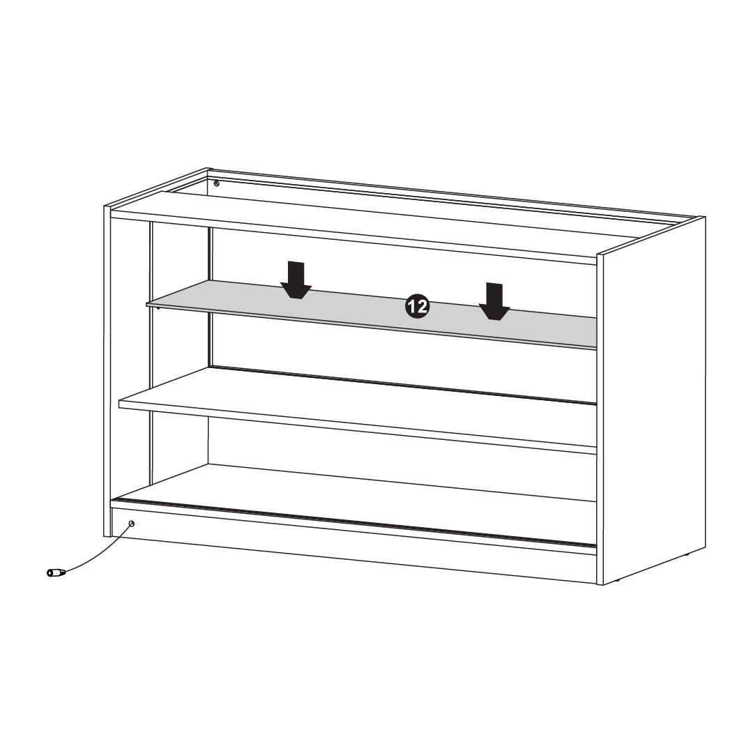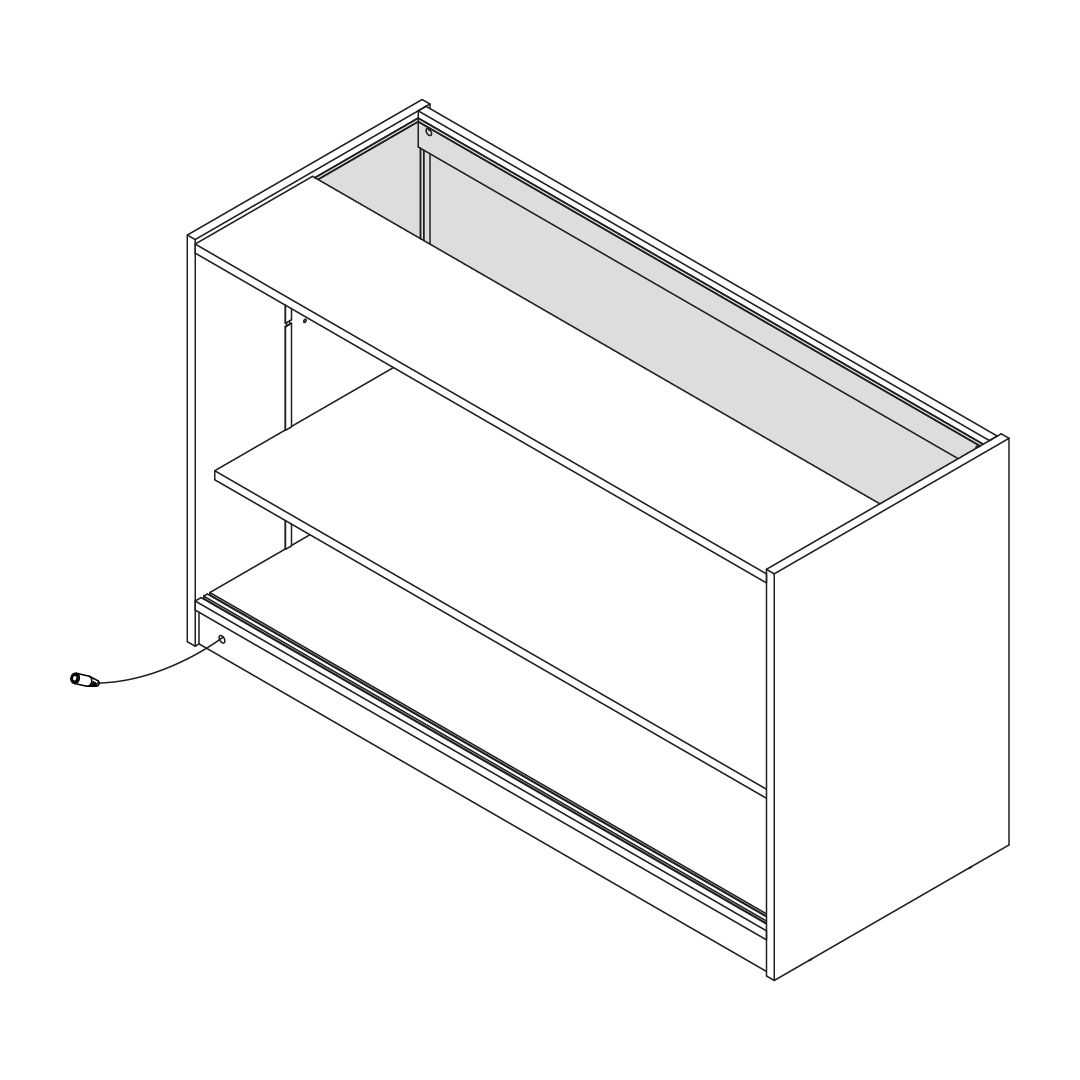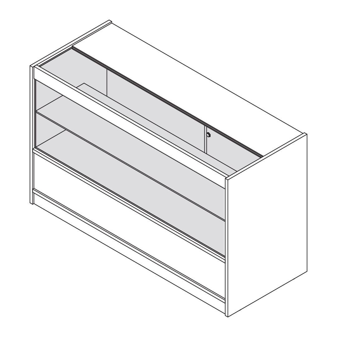 Lager- und Präsentationsbedürfnisse sind in diesem Design durchdacht ausbalanciert. Der Schrank verfügt über drei Regale – zwei Ausstellungsregale zur Hervorhebung von besonderen Artikeln und ein geschlossenes Regal für sicherere Aufbewahrung. Zwei abschließbare Schiebetüren auf der Rückseite, die mit zwei Schlüsseln geliefert werden, bieten sicheren Zugang zu Ihrem Lagerbestand und bewahren gleichzeitig ein schlankes Erscheinungsbild aus der Sicht des Kunden.