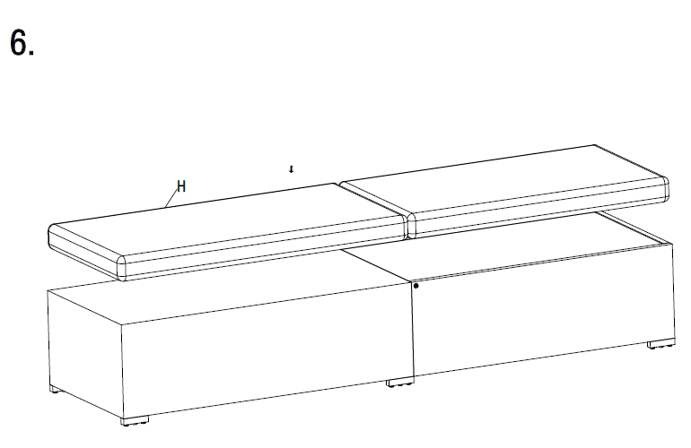 6.1- Τοποθετήστε τα μαξιλάρια (Μέρος H) πάνω στο συναρμολογημένο πλαίσιο της ξαπλώστρας.