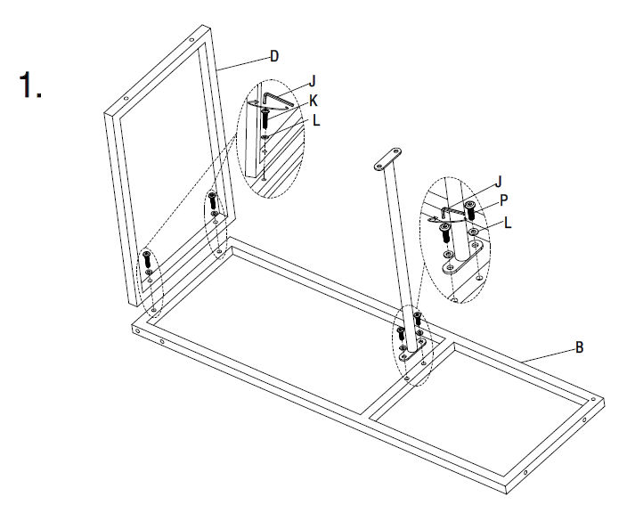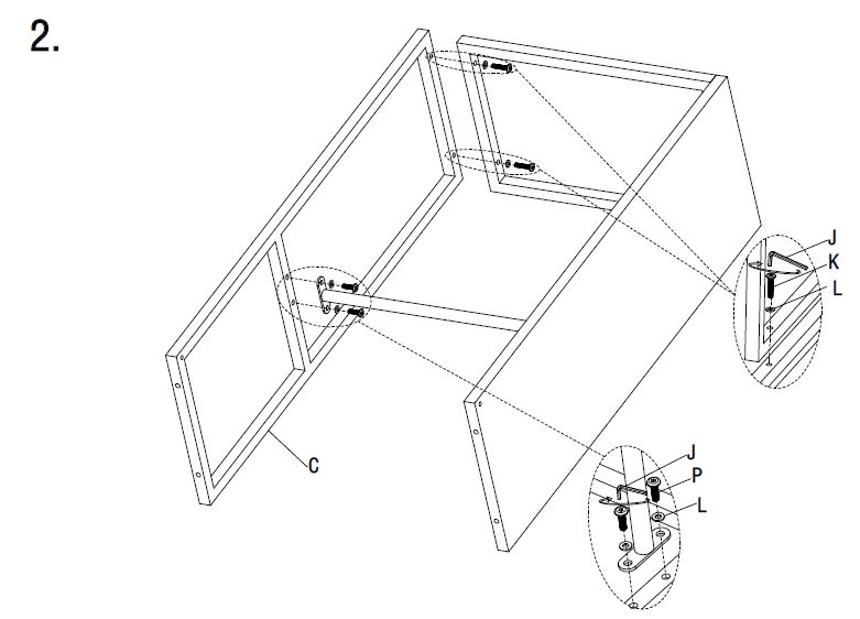 2.3- Στερεώστε κάθε σύνδεση μεντεσέ χρησιμοποιώντας τα Μέρη J, K/P και L όπως φαίνεται.