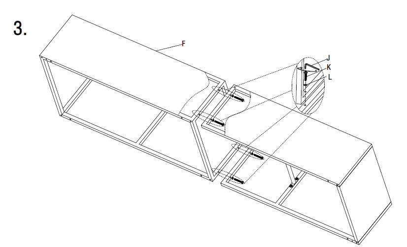1.3- Στερεώστε τους βραχίονες άρθρωσης με τα Μέρη J, K και L.