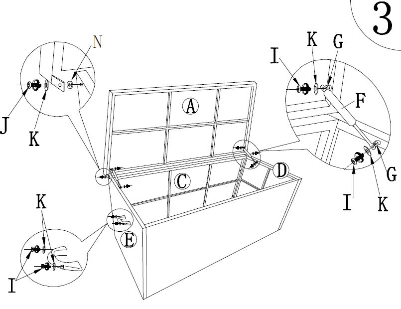 Attach any side brackets or fittings shown using the same bolt and connector method.
