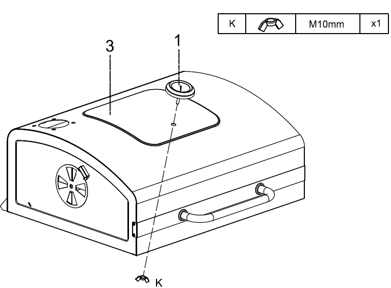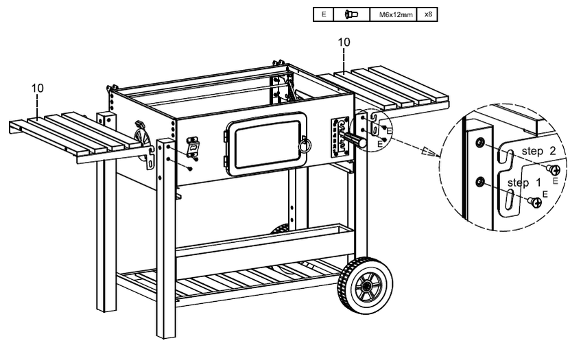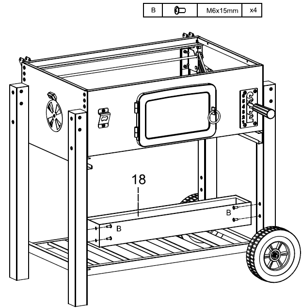 Note: Make sure the holes are lined up correctly before securing the bolts. 15. Step 15 - Attaching the BBQ Lid Handle![]()