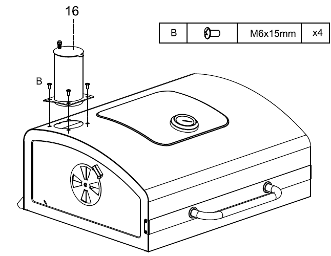 17. Step 17 - Attaching the Chimney to the BBQ Lid![]()