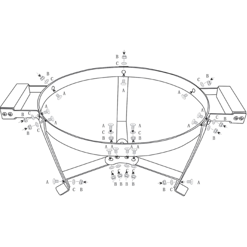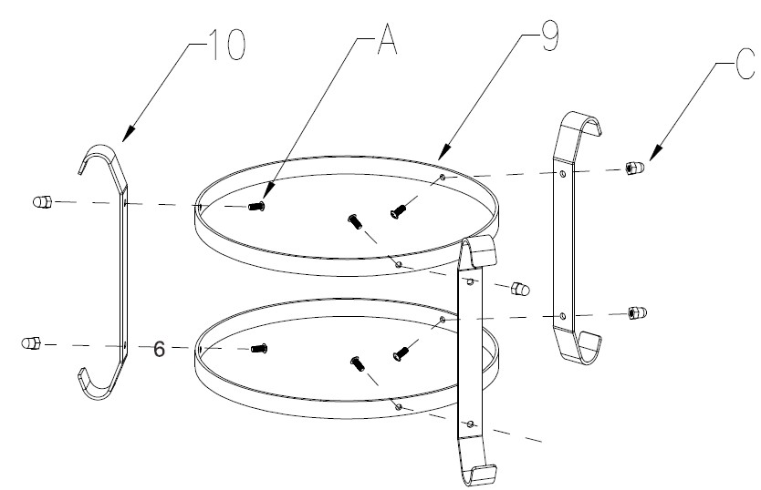 Attach the Support Legs (Part 10) to the Bottom Support Stand Ring (Part 9) using the Screws (Part A) and Nuts (Part C).