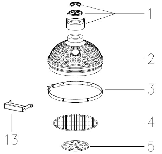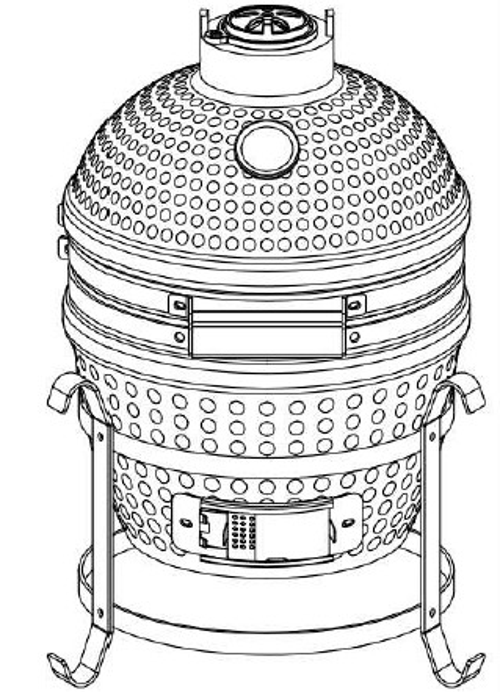 Attach the Bottom Air Vent (Part 11) to the front opening of the Lower Grill Base (Part 8), then place the Top Vent Cap (Part 1) onto the top of the Grill Dome (Part 2).