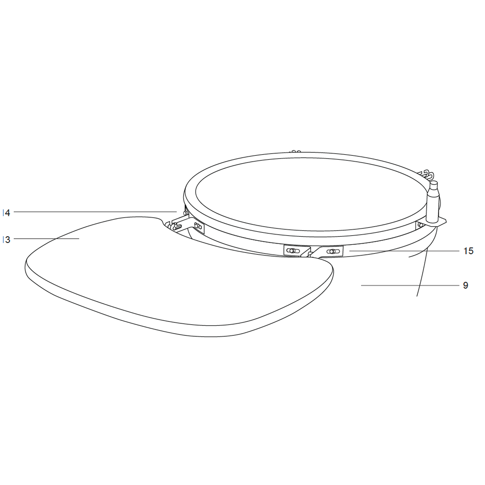 Important: Lifting by the hinge or the side tables could result in injury and damage to the product.