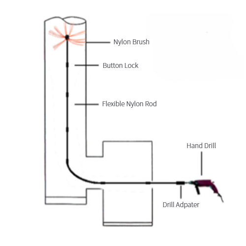 Before connecting your drill, connect rods and the brush head up the chimney until you hear and feel it contact the underside of the cap.