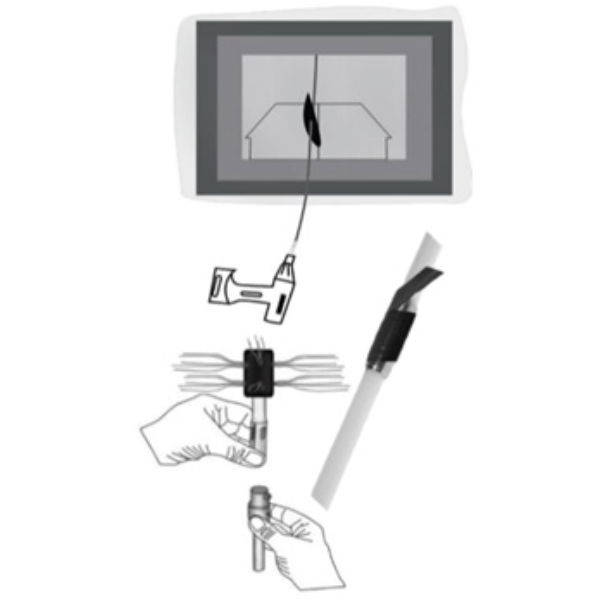 Only once at least 2 rods and the brush head are assembled should it be inserted through the incision in the plastic and into the flue/chimney.