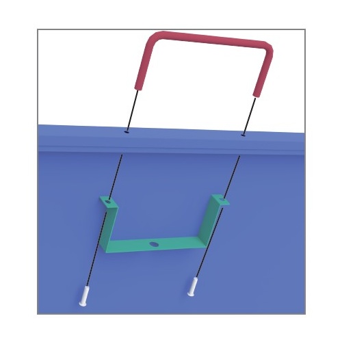 Loop the Metal Chain (A20) through the handles on the wheelie bin. Connect the chain to the Top Cover Panel (Part 5) using the Metal Ring (Part A18).