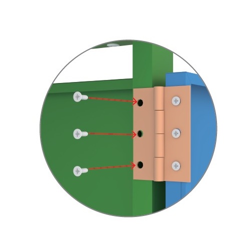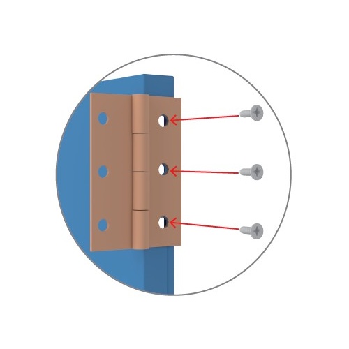 Note: Ensure that the holes of the hinge that are not being used are facing the front of the door panel.