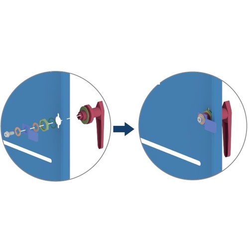 Taking care, fix the Handle (Part A19) to the door.