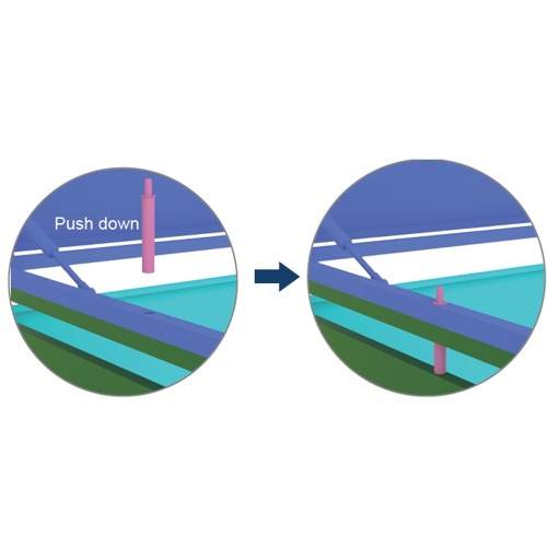 Firmly push the Soft Close Damper (Part A15) into the hole on the Top Cover Panel (Part 5).