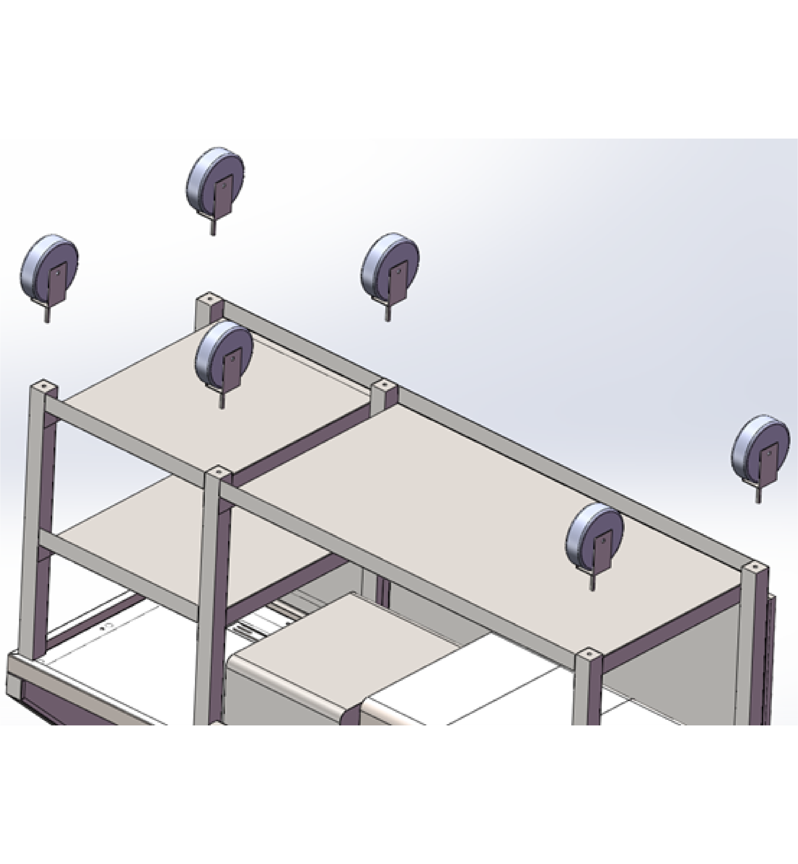 Screw the wheels into the holes on the underside of the legs of the Mobile Cocktail Bar Station.