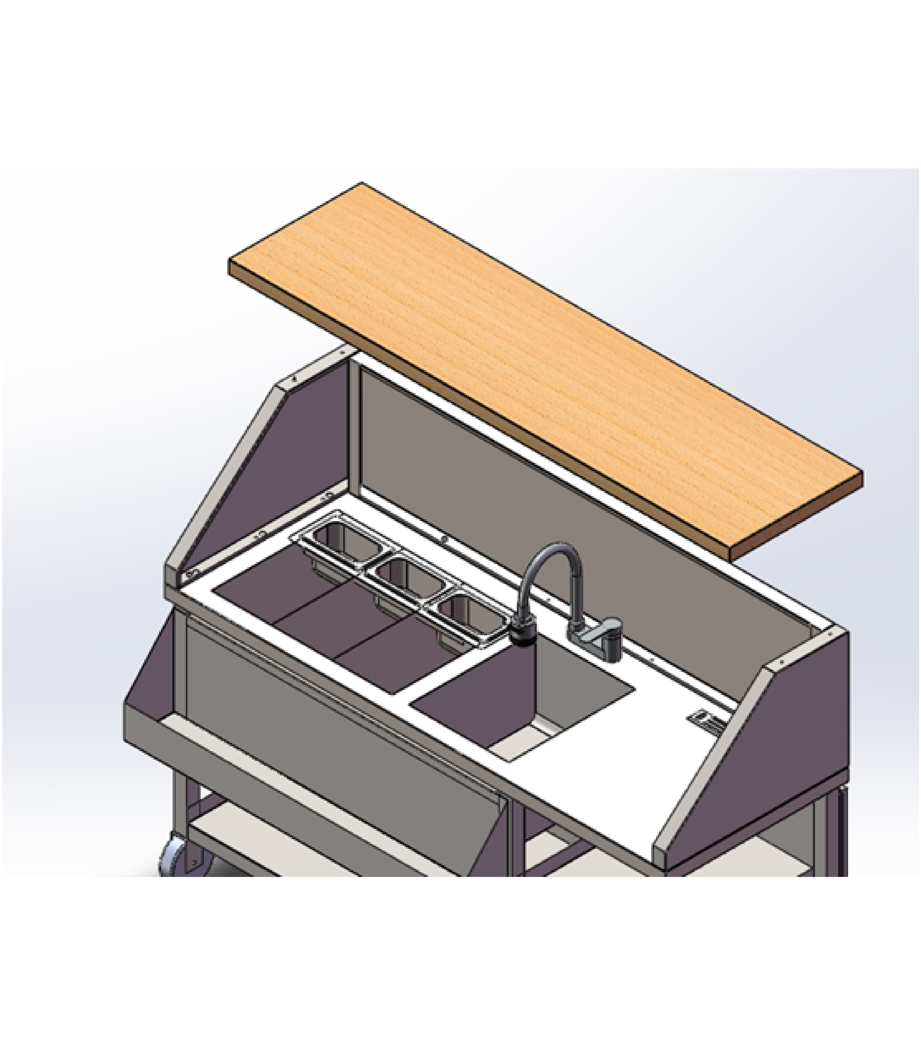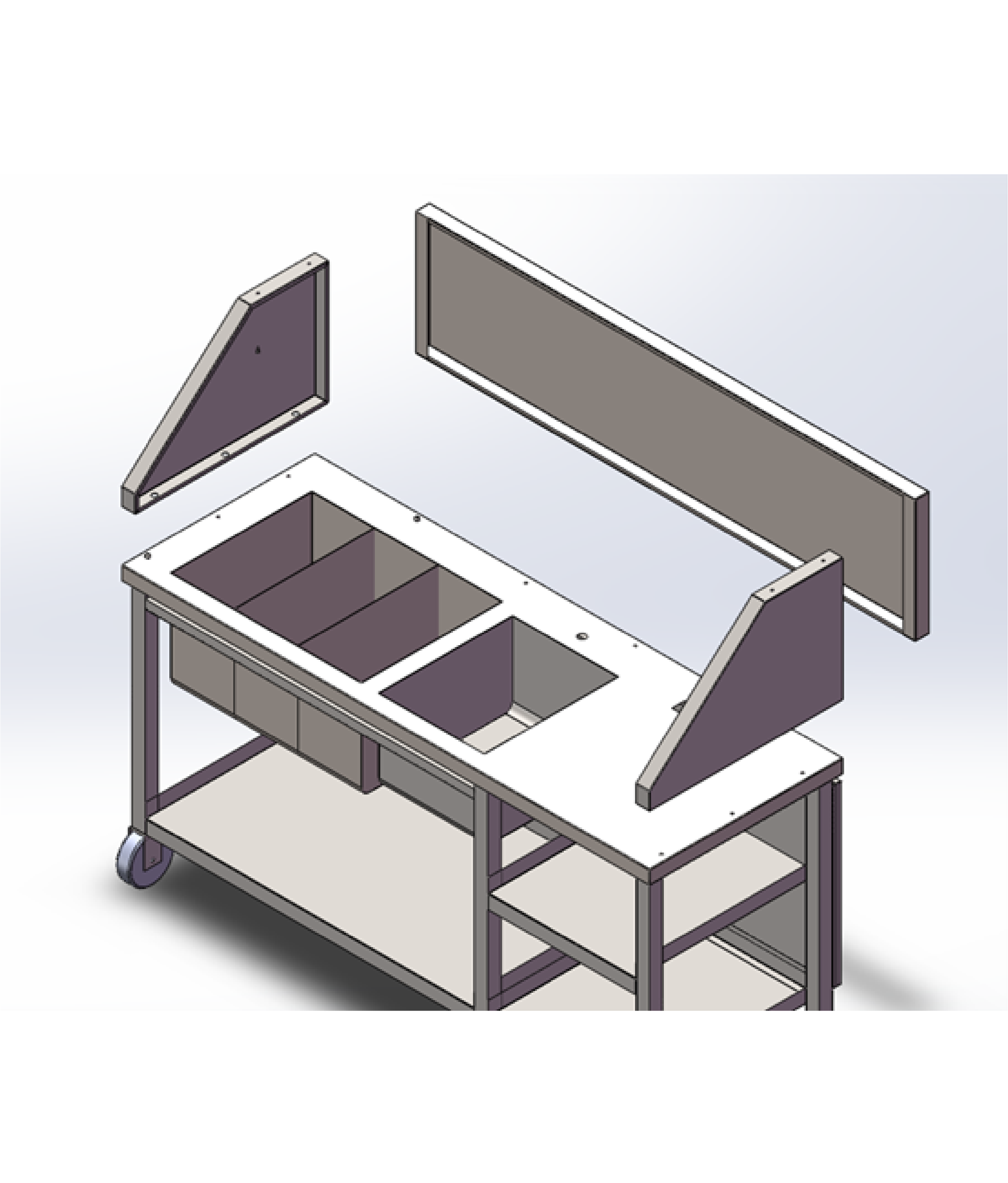 Using the M6\*20 Hex screws secure the top panels to the Mobile Cocktail Bar Station. Tighten the screws until they feel secure in the fittings.