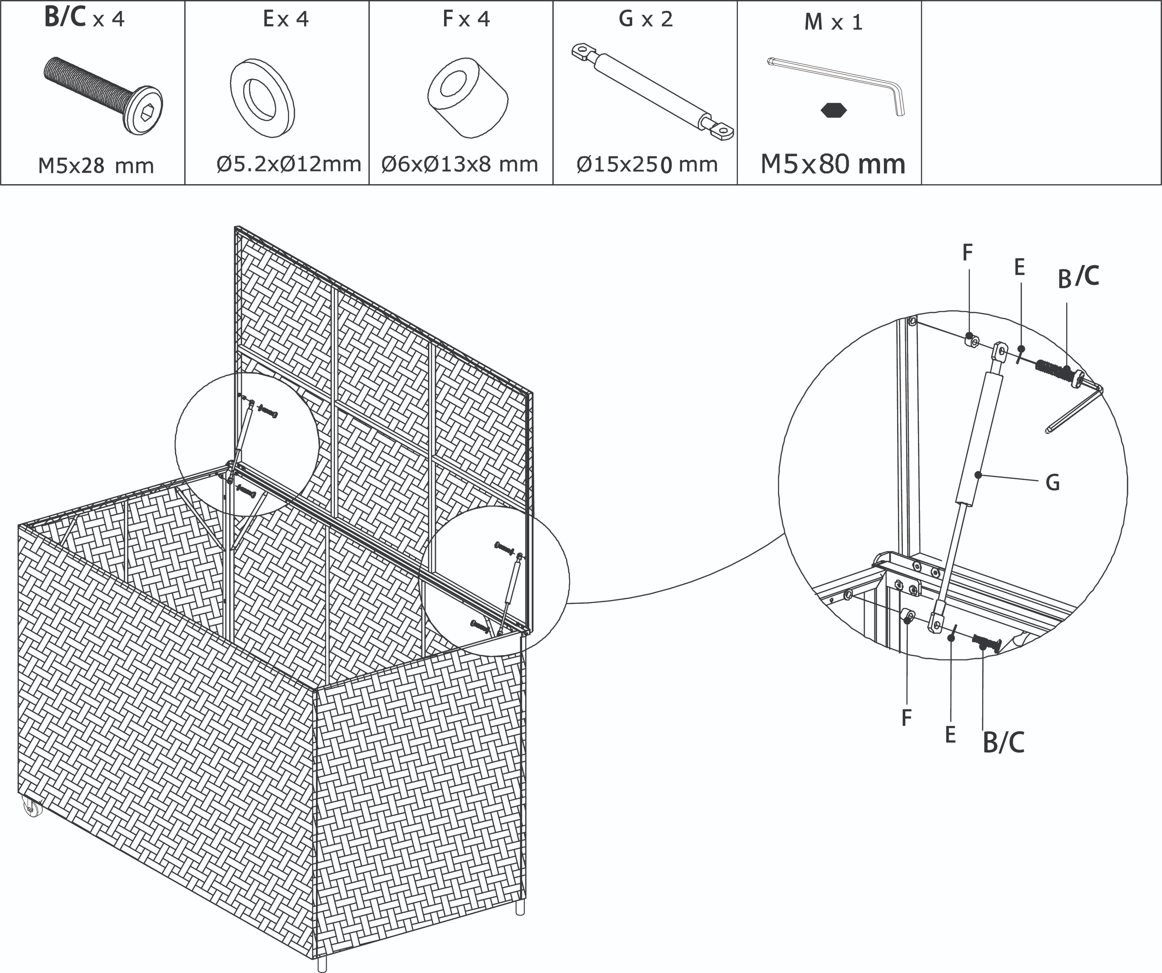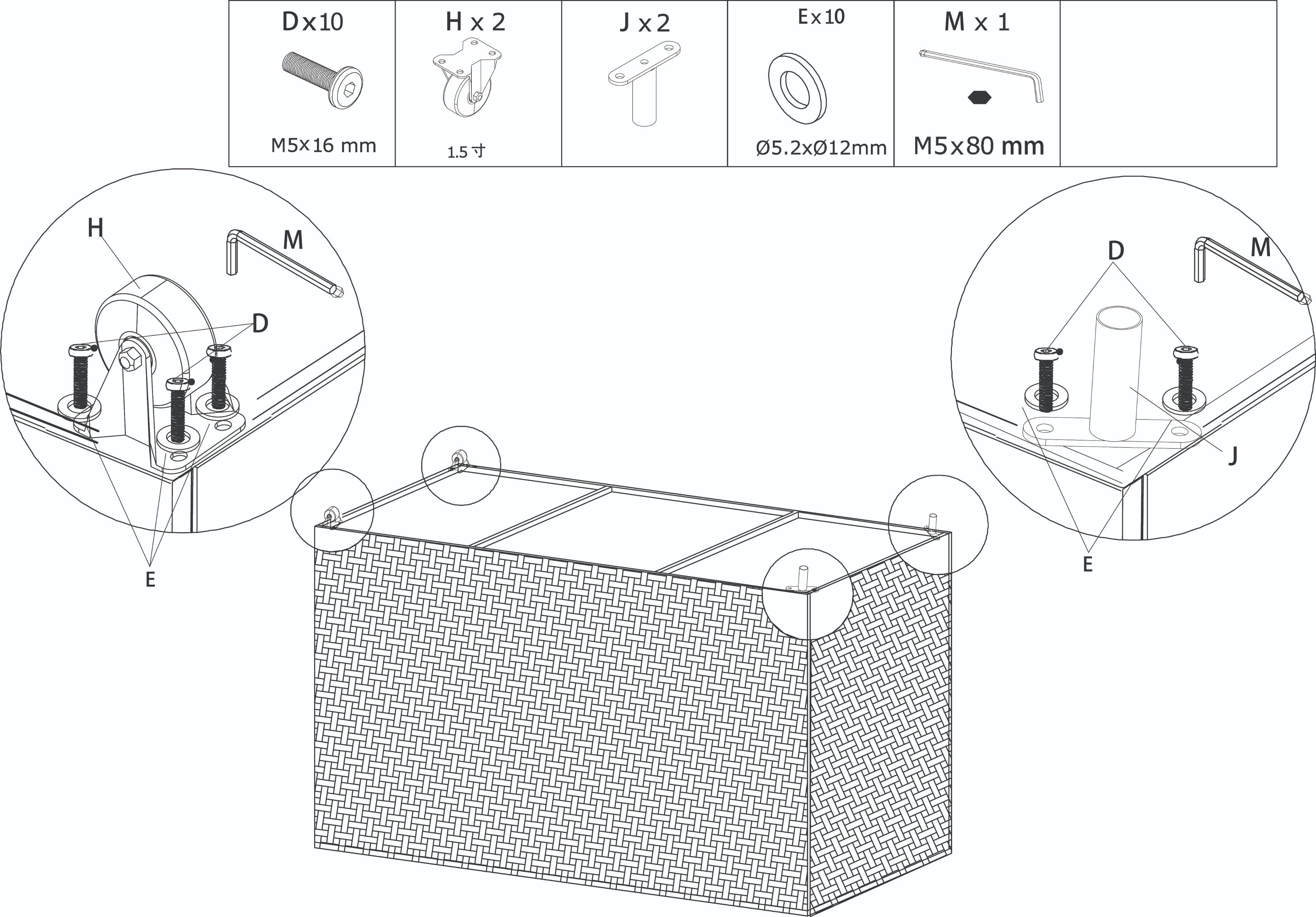 The Rattan Storage Box should be stored indoors for adverse weather conditions including heavy rain and low temperatures.