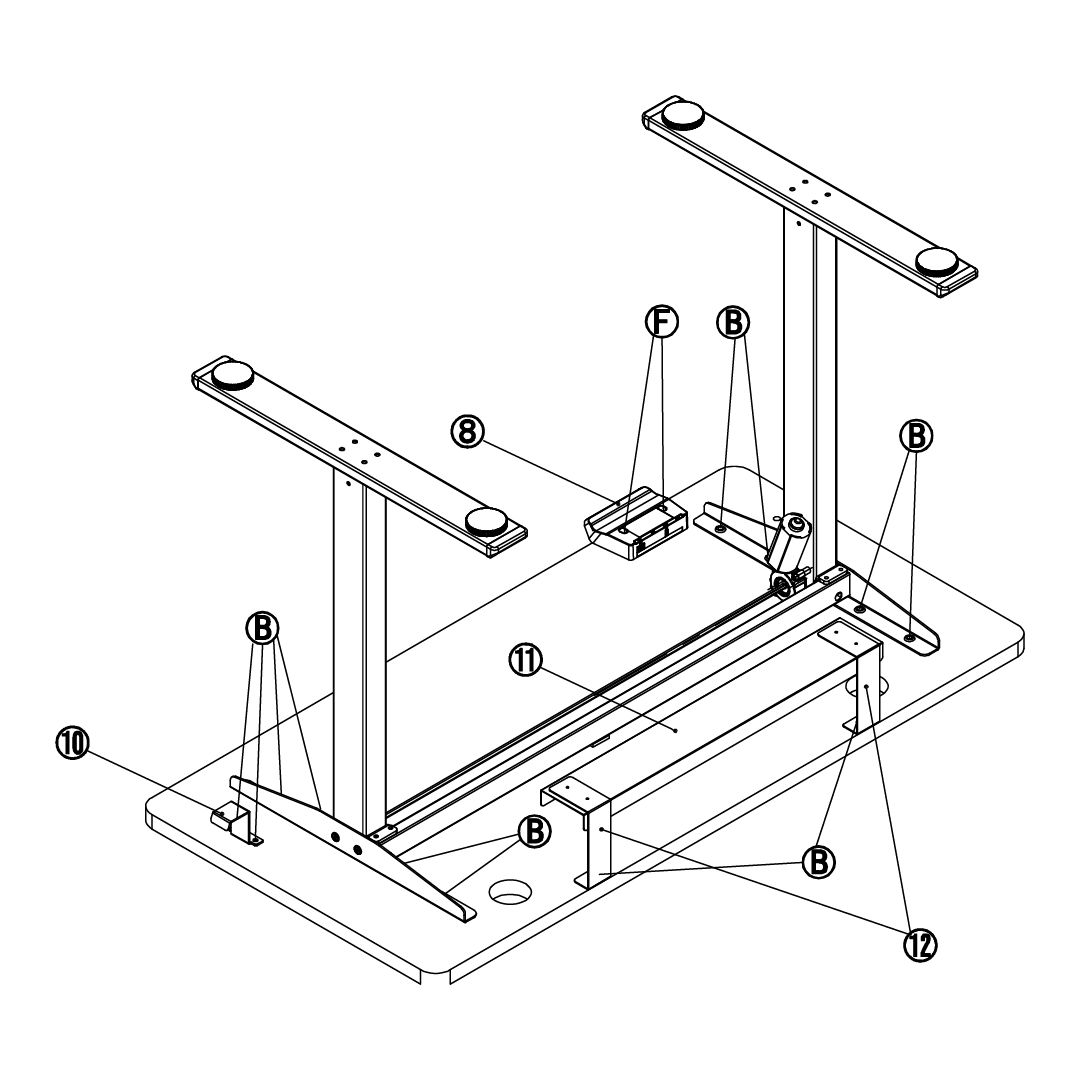 Secure the Standing Desk Draw to the Standing Desk by screwing Part O into the pre-drilled holes on the underside of the desk
