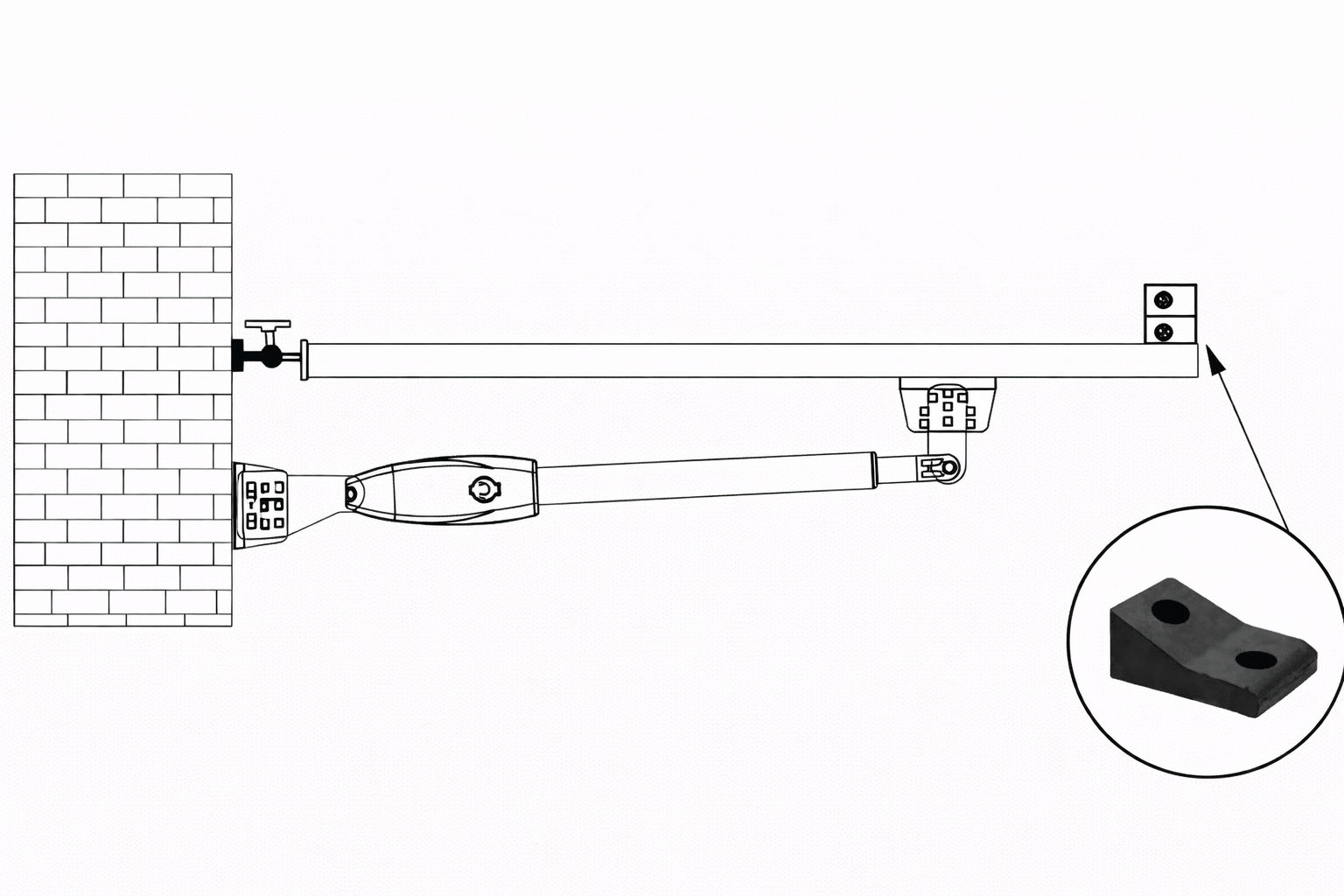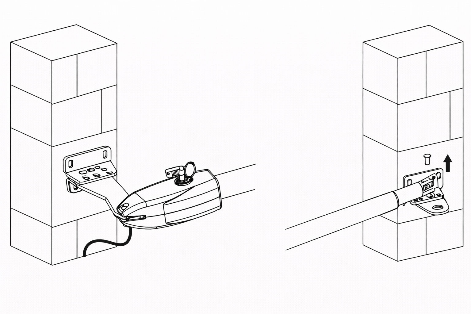 Asegúrese de que la altura del soporte de poste esté exactamente al mismo nivel que la altura del soporte de la puerta. No asegurar alturas comunes precisas hará que el brazo del motor se doble, lo que llevará a un fallo.