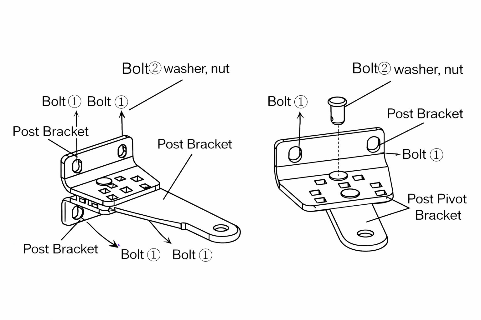 2. Montaje del Soporte de Poste: Instale el Soporte de Poste en el lugar adecuado utilizando los Pernos (1).