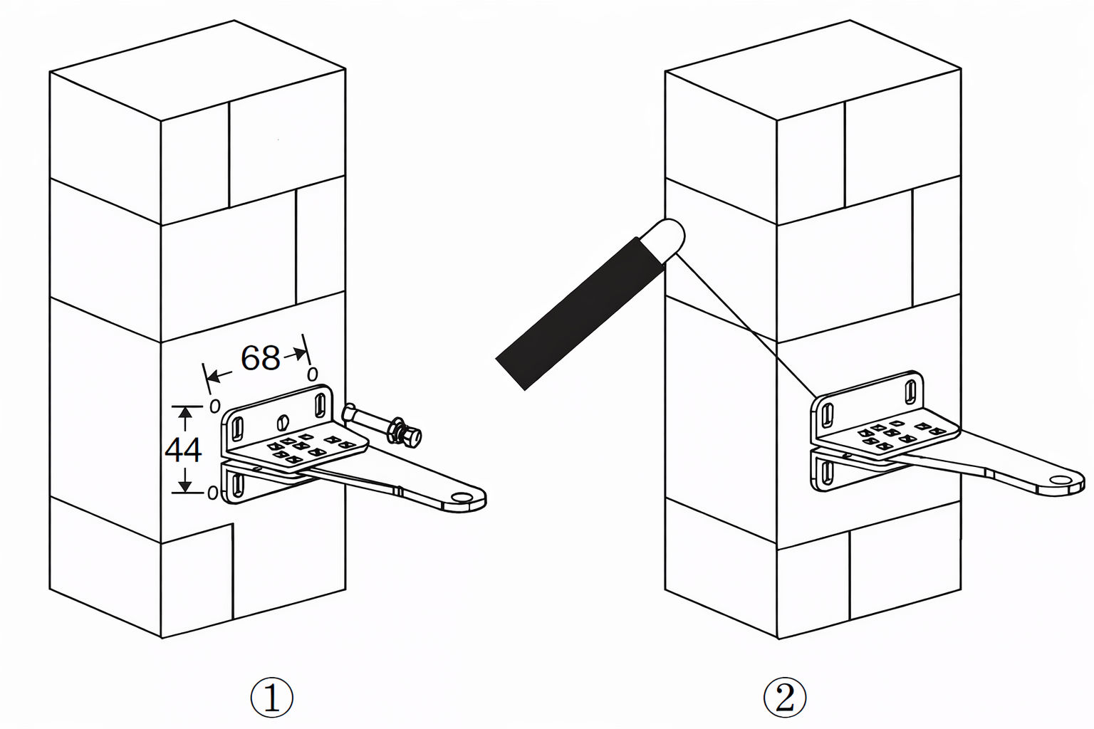 1. La placa del soporte de poste se fija al soporte fijo con un ángulo apropiado. Saque el brazo del abridor de puerta para instalar los soportes de puerta y los soportes de poste en la máquina de la puerta (el ángulo del soporte es ajustable). 2. Abra completamente la puerta (tome 90° como ejemplo) y retraiga el brazo del abridor de puerta a la posición más corta (al determinar la posición del soporte de puerta en la puerta, haga que la puerta y la pared donde está el soporte trasero sean verticales). El soporte de poste está cerca de la pared, y el soporte de puerta está cerca del cuerpo de la puerta. Marque la posición en el cuerpo de la puerta con un marcador. 3. Cierre completamente la puerta a 180°, extienda el brazo del abridor de puerta al máximo, coloque el soporte de puerta en el punto marcado en la puerta anterior y observe si la posición es correcta, taladre agujeros en la posición marcada en el cuerpo de la puerta para montar el soporte. Luego, la máquina de la puerta se coloca horizontalmente, se determina la posición del soporte y se perfora el agujero. Golpee el tornillo de expansión para montar los soportes.