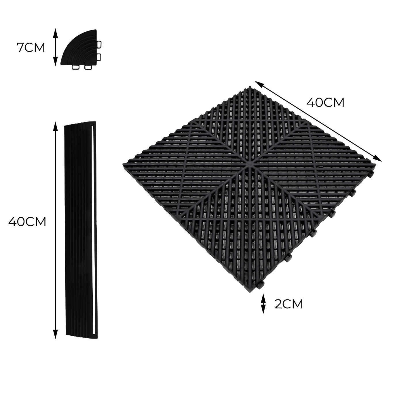 Este paquete de 120 baldosas grises entrelazadas y 46 piezas de borde proporciona una solución completa de suelo, cubriendo un área generosa de 19,2 metros cuadrados en una configuración de 8 baldosas por 15 baldosas. Ya sea que sea un propietario, un entusiasta de los automóviles o un dueño de taller, este sistema de suelo está diseñado para satisfacer las necesidades de los entornos más ocupados y exigentes.
