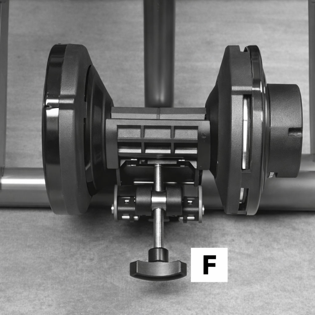 Étape 1 - Tout d'abord, tournez le bouton réglable F pour libérer le rouleau du pneu de la bicyclette.