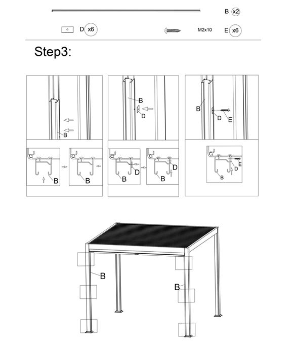 Lubrifiez les pièces mobiles – Si votre pergola a des sections à lames ajustables ou des composants coulissants, appliquez un lubrifiant à base de silicone pour assurer un fonctionnement fluide.