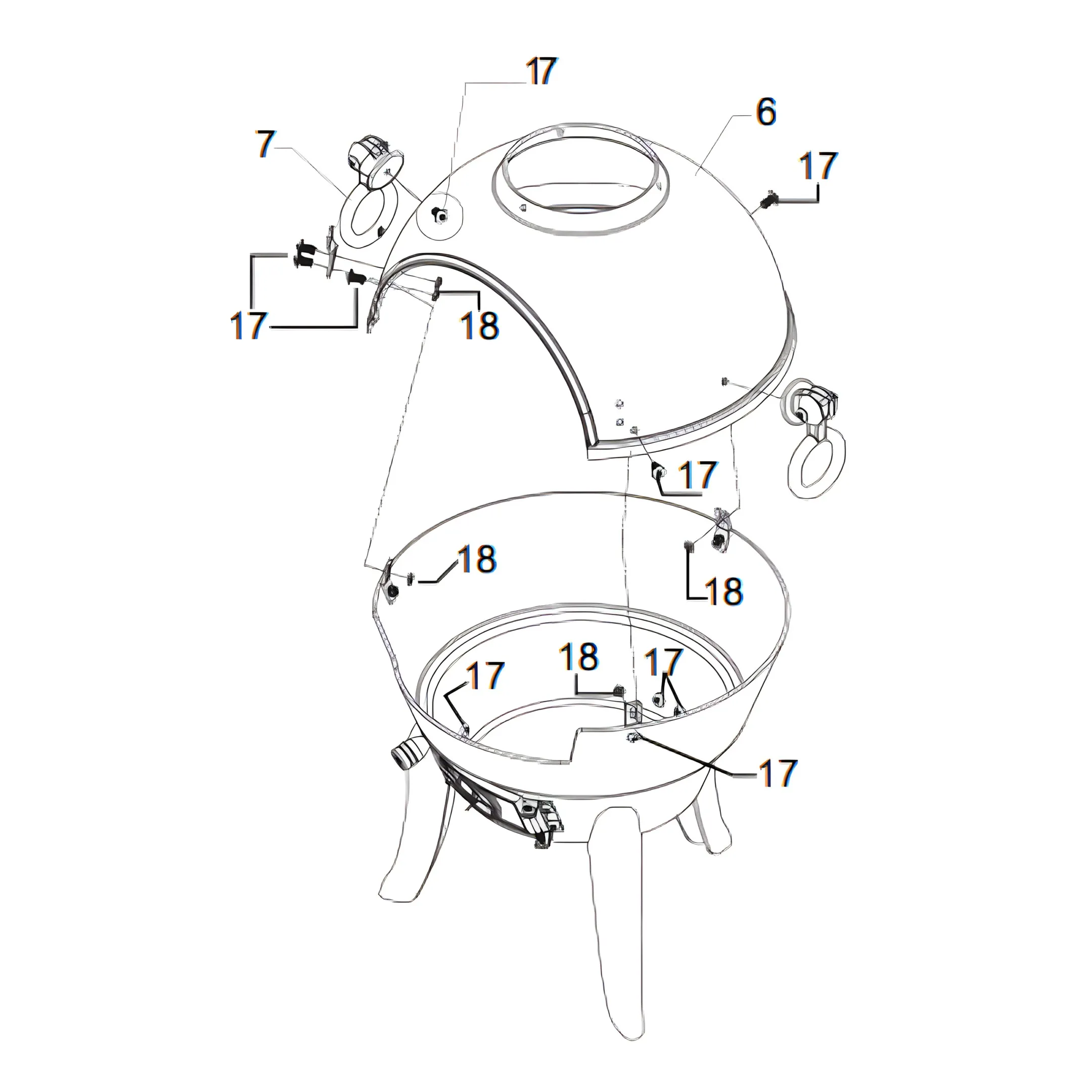 Fissare le maniglie (parte 7) su ciascun lato della chimenea utilizzando le viti (parte 17).