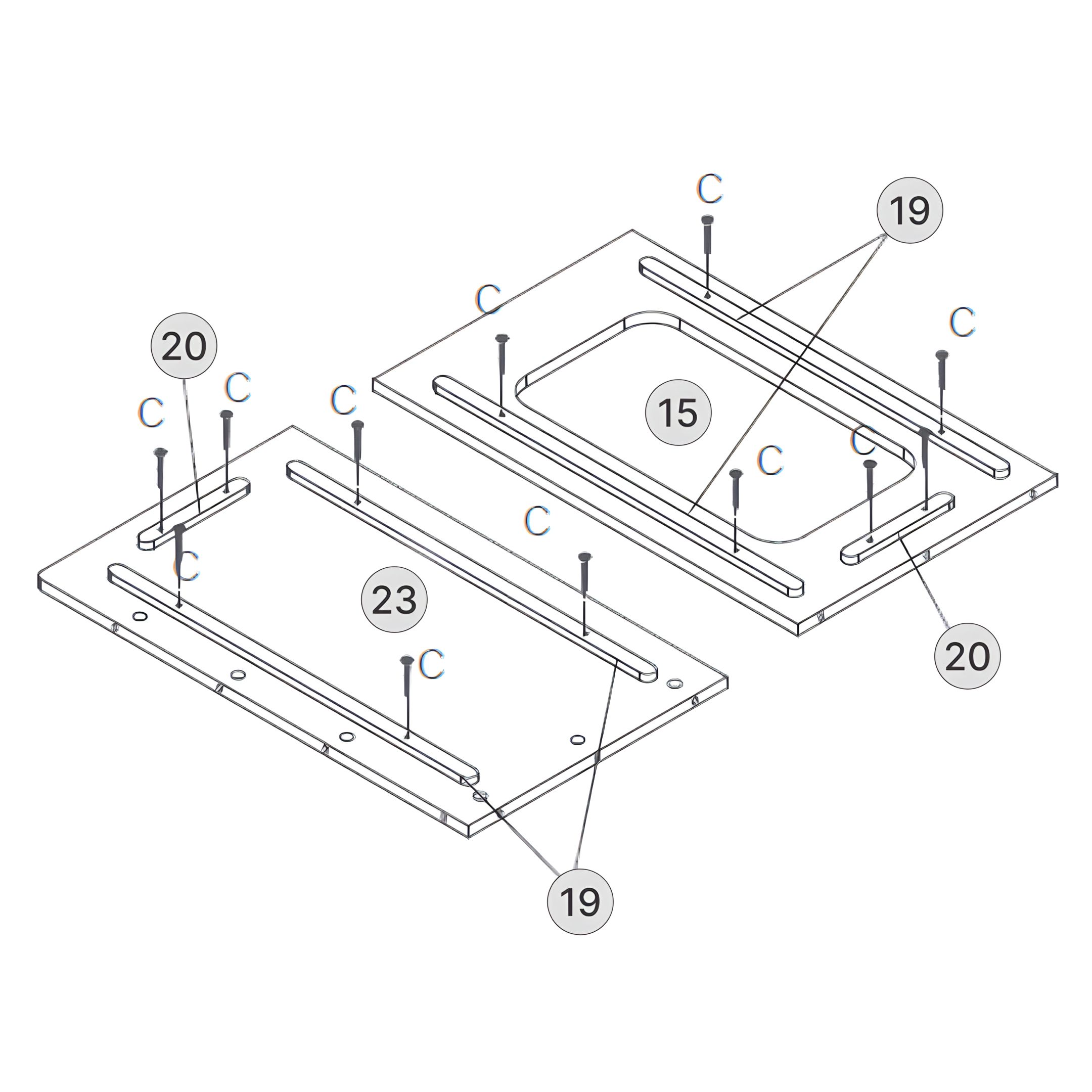 24Scatola B: Parte 24 – Pannello Posteriore Interno della Panchina Destra con Guide per Listelli