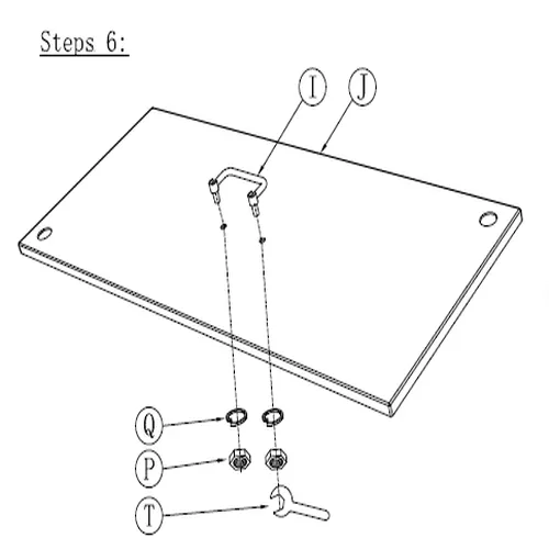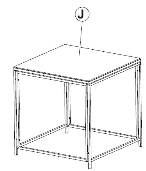 1. Assicurati che tutti i bulloni dei passaggi precedenti siano serrati saldamente. 2. Capovolgi il tavolo in modo che poggi sulle sue gambe. 3. Posiziona Parte del Tavolo J sul telaio superiore e allinea i bordi uniformemente su tutti i lati. 4. Fissa il piano del tavolo come mostrato (se sono forniti fori preforati).