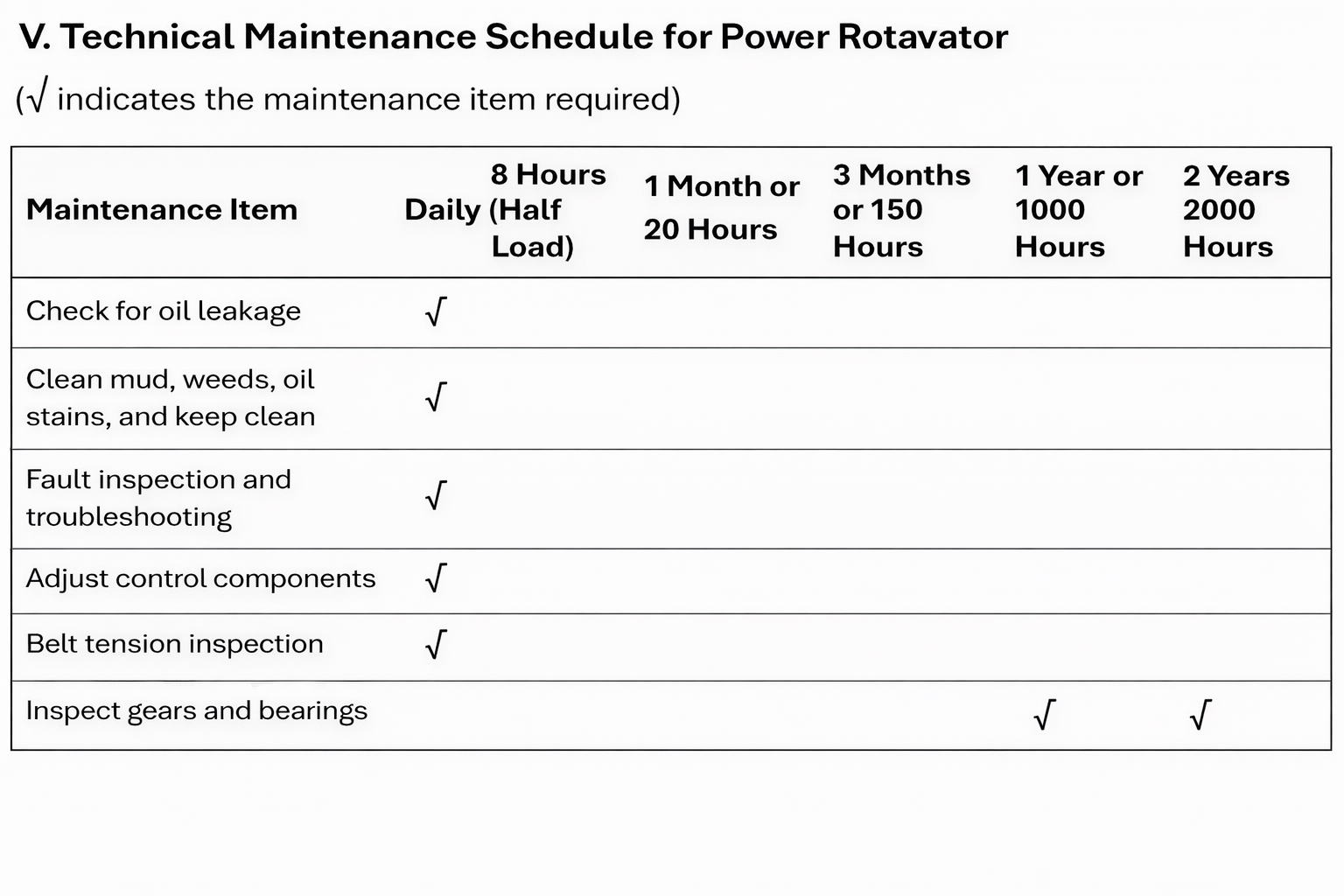 Verwijder na de bediening aarde, onkruid, olie en vuil van de krachtrotavator om netheid en prestaties te behouden.