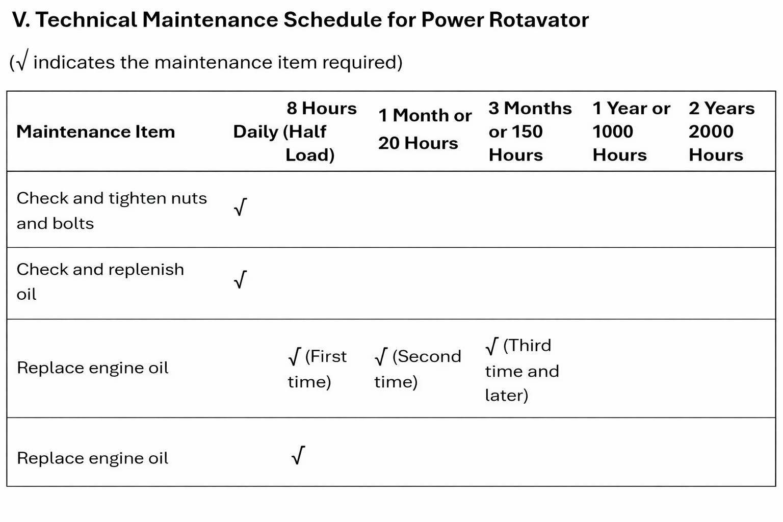 ⚠ Waarschuwing: De krachtrotavator mag alleen worden gestart nadat is bevestigd dat het veilig is om dit te doen. Wanneer de motortemperatuur na het starten laag is, is zware belasting niet toegestaan, vooral niet voor nieuwe of gereviseerde machines.