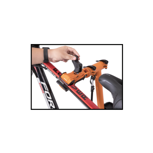Til de fiets op en plaats het frame tussen de klemkaken (meestal de zadelpen of frametube).