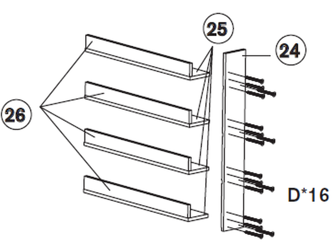 Bouw de rekkenunit met behulp van de planken (Deel 25 en 26) en de zijkant (Deel 24). Schroef deze op hun plaats met Deel 16.
