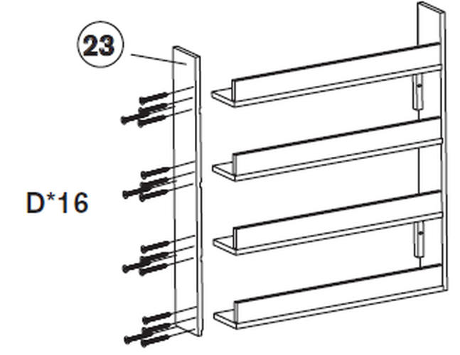 Bevestig de planksteun (Deel 17) aan de deurpanelen met behulp van Deel B.