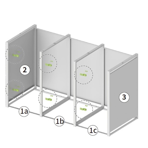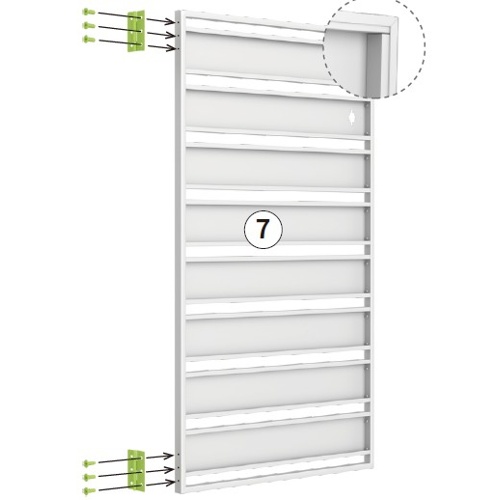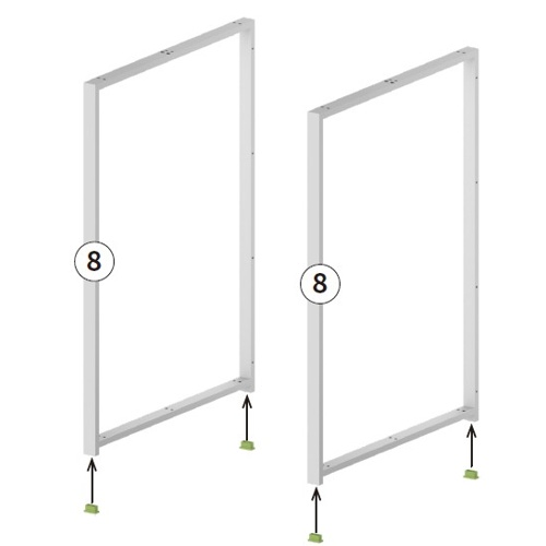 Installeer Deurmagneten (Onderdeel A17) op Zijpaneel Links (Onderdeel 2) en de Middenframes (Onderdeel 8) met behulp van Schroeven (Onderdeel G24).
