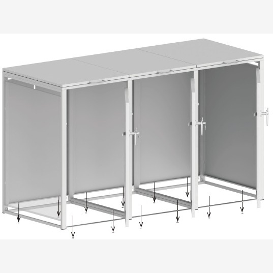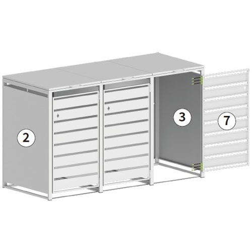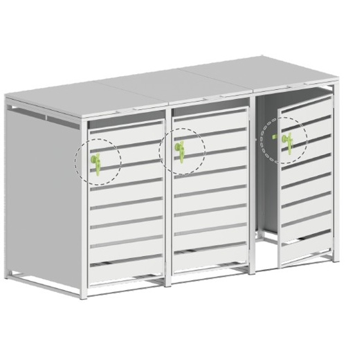 Deze metalen kliko-opslagunit is ontworpen om tot drie kliko's veilig te huisvesten, waardoor een nette en georganiseerde buitenruimte behouden blijft. Het beschikt over afsluitbare deuren, met zuigers ondersteunde soft-close deksels en een kettingkoppelingssysteem voor gemakkelijke toegang tot de kliko's. Verkrijgbaar in een duurzame antraciet metalen afwerking of een houtlook metalen afwerking, het bevat ook een ingebouwde houder voor geurblokjes (niet inbegrepen).